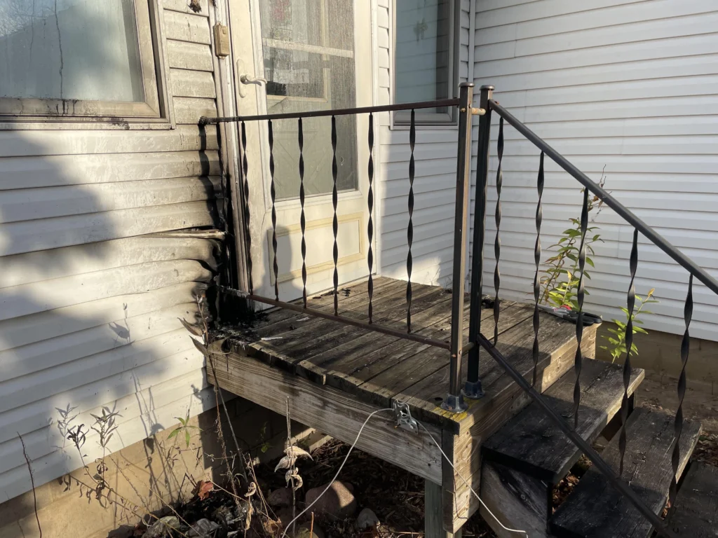 Fire damage doesn’t just affect the inside of a property—it can leave a lasting impact on its exterior and curb appeal. In this project, flames and heat compromised the front steps, siding, windows, and entry door, requiring a full rebuild of the entryway. Our team carefully removed all damaged materials and replaced them with durable, visually cohesive upgrades that restored both safety and style. From structural integrity to aesthetic renewal, we’re committed to helping homeowners move forward with confidence after disaster strikes.